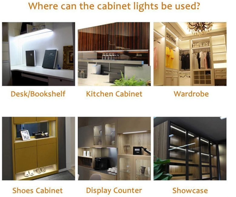 This will ensure that the light levels are consistent for the entire length of your shelf or cabinet, without causing awkward shadows.